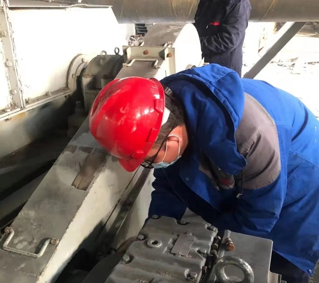 2月14日(正月初三)技術(shù)員冒著風(fēng)雪進(jìn)行燒結(jié)活性炭脫硫脫硝系統(tǒng)調(diào)試