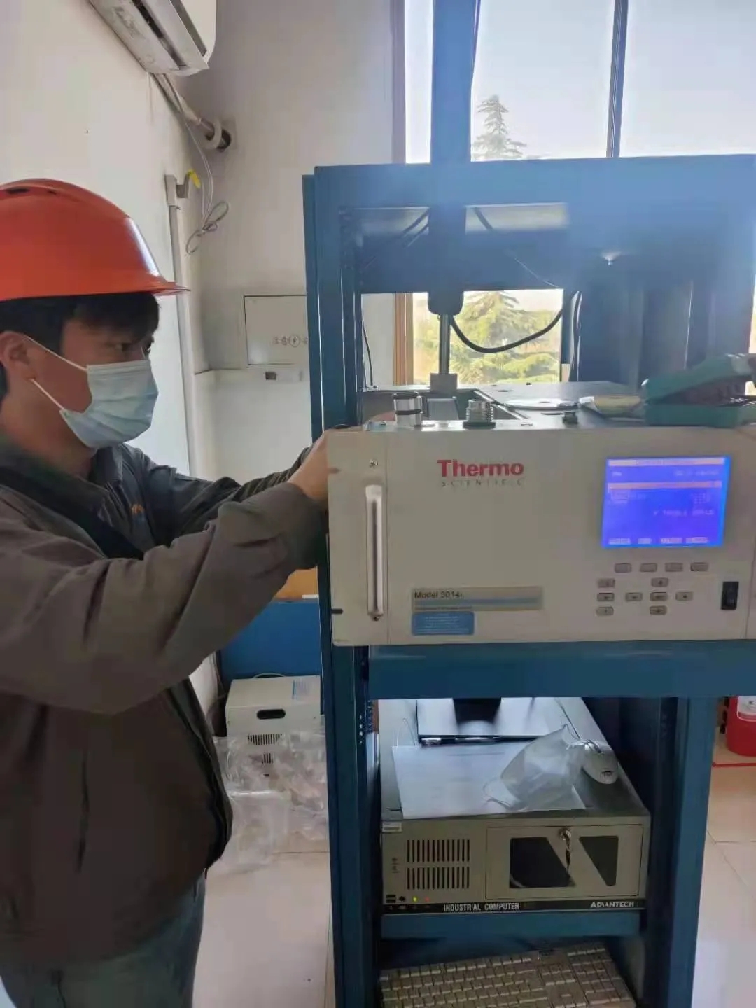 專心致志!環(huán)保運維工程師對環(huán)保在線監(jiān)測設備進行調(diào)試。
